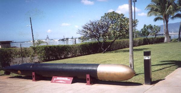 The 18' torpedoes carried by US submarines during World War II were designed to explode on contact with the targeted enemy ship. (Photo was taken at the USS Bowfin Submarine Museum and Park, Pearl Harbor, Hawaii, in 2003.)