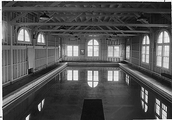 Built in 1928, the indoor swimming pool at Naval Training Station San Diego was 60' long, 25' wide, and 8' deep.