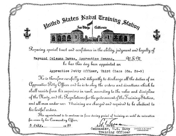 Ray Daves, 19, Naval Training Station San Diego, July 1939.