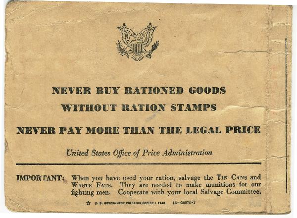 Back cover of the above ration booklet issued to American civilians during World War II.