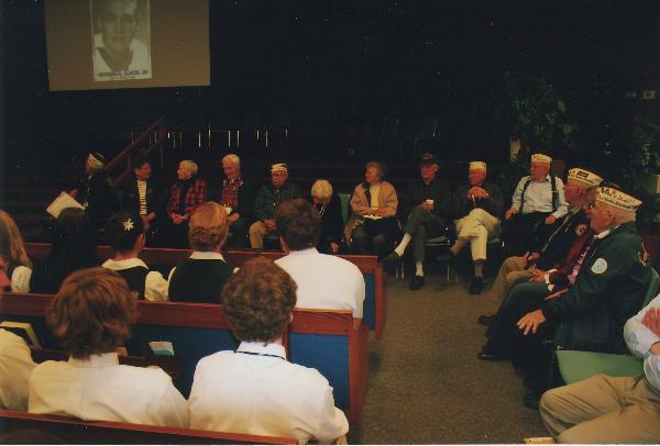 Nine Pearl Harbor Survivors view 1941 photos of themselves during their appearance as guest teachers for